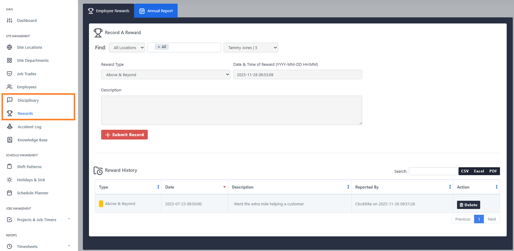 New Feature - Rewards and Disciplinary sections added to the software. Record and report on employee achievements and warnings.