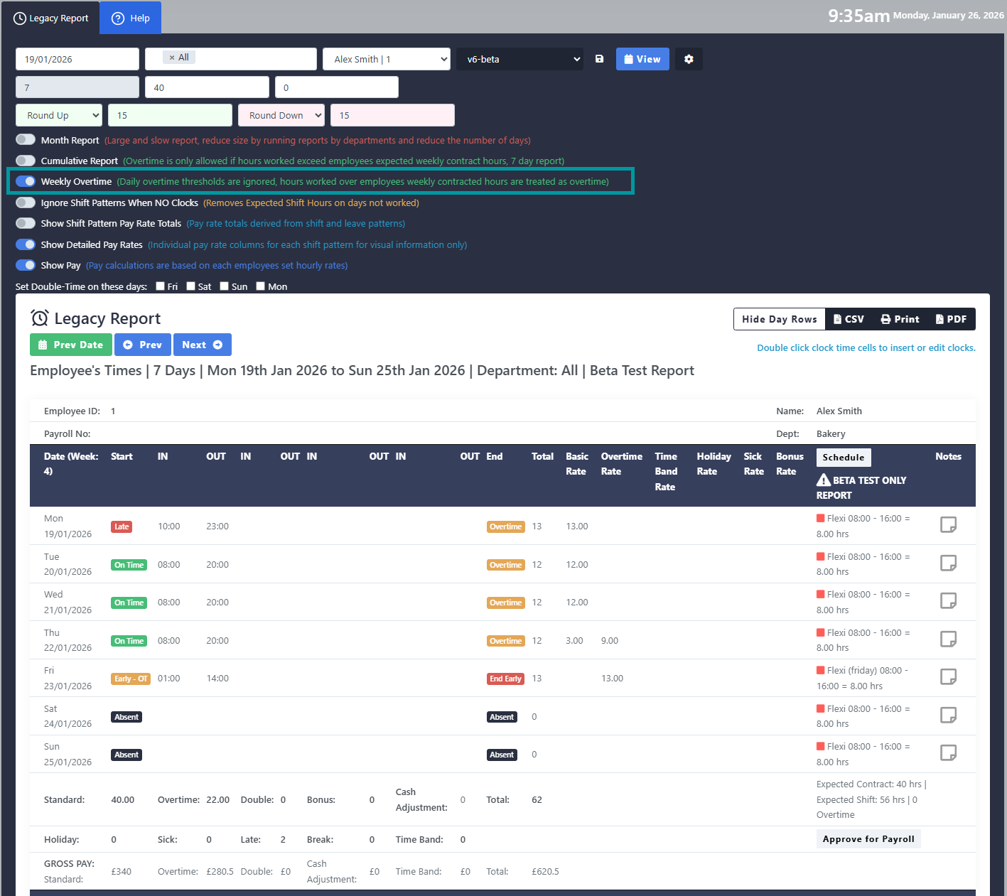 Weekly Overtime Support - Legacy Timesheet V6 onwards has been updated to support weekly overtime calculations.